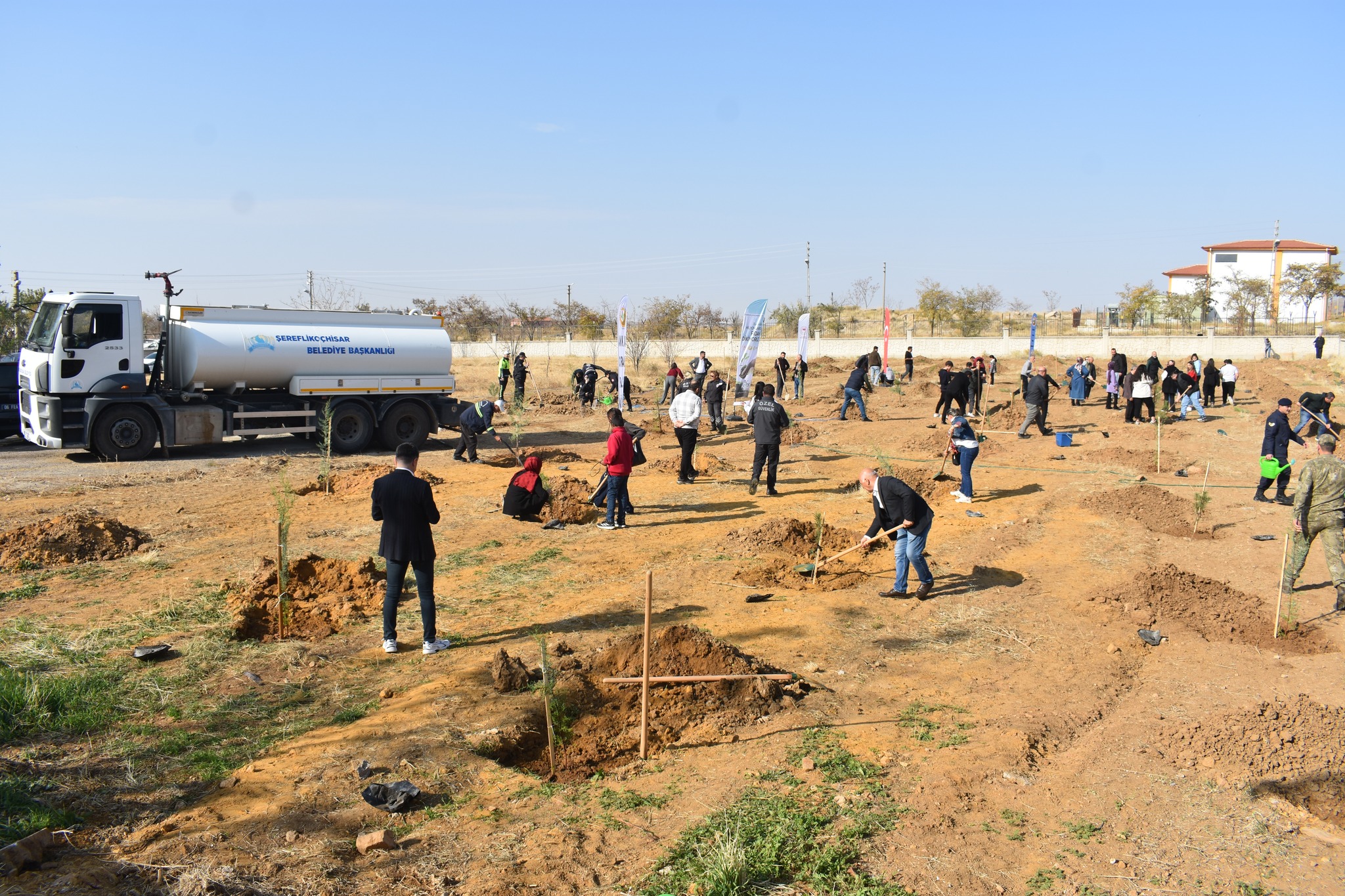 11 Kasım Milli Ağaçlandırma Günü'nde Kaymakam Sayın Taner Tengir, Belediye Başkanımız Sayın Mustafa Koçak, protokol mensupları ve öğrenciler eşliğinde Yıldırım Beyazıt Üniversitesi Tuzgölü yerleşkesinde fidanlar toprakla buluşturuldu.