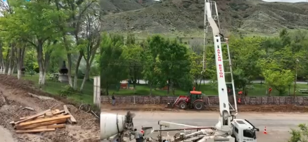 Mehmet Aktaş Aile Piknik alanında, avlu duvar çalışmaları sürdürülüyor