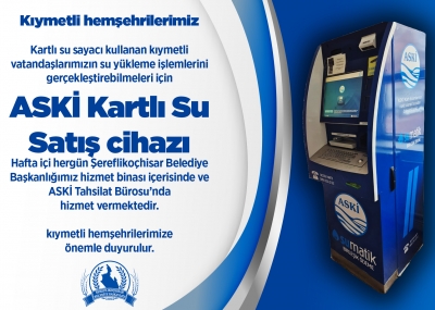 ASKİ Kartlı Su Satış Cihazı Belediye Binamızda Hizmet Vermektedir
