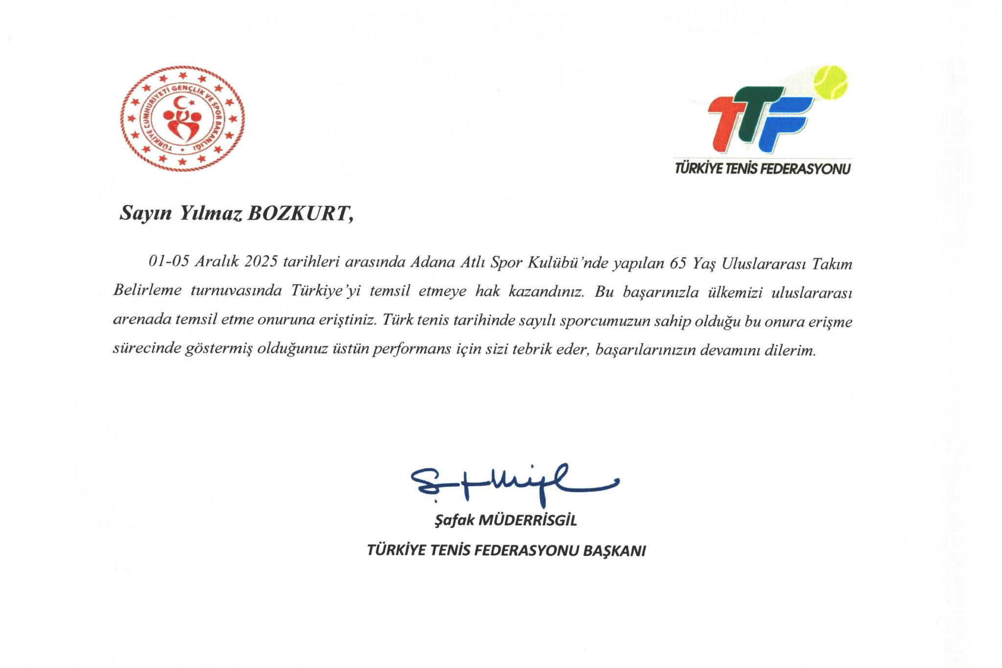 Kendisini bu anlamlı temsilinden dolayı tebrik ediyor, turnuvada başarılar diliyoruz.