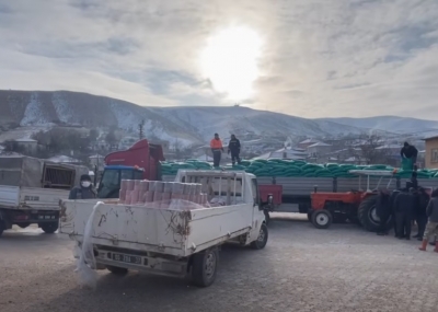 Küçükbaş hayvan yetiştiricilerimize şeker pancar küspesi ve vitamin taşlarını ulaştırıyoruz.