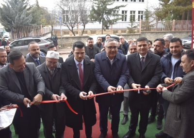 Açılış kurdelesini siyasi parti temsilcileri ile birlikte kesen ...